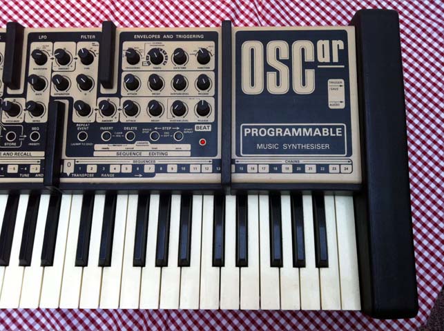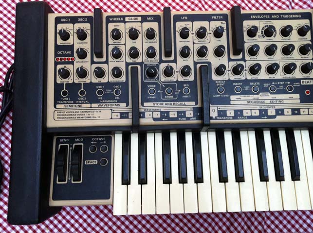 Designed and released by Chris Hugget after the collapse of EDP it is a very interesting design electronically and mechanically. I really like the way the keyboard is slightly tilted up and the way everything is held together with metal bars and big chunks of moulded rubber. Sad to say the rubber doesn’t last, on this one it was very brittle, so taking it apart was difficult!