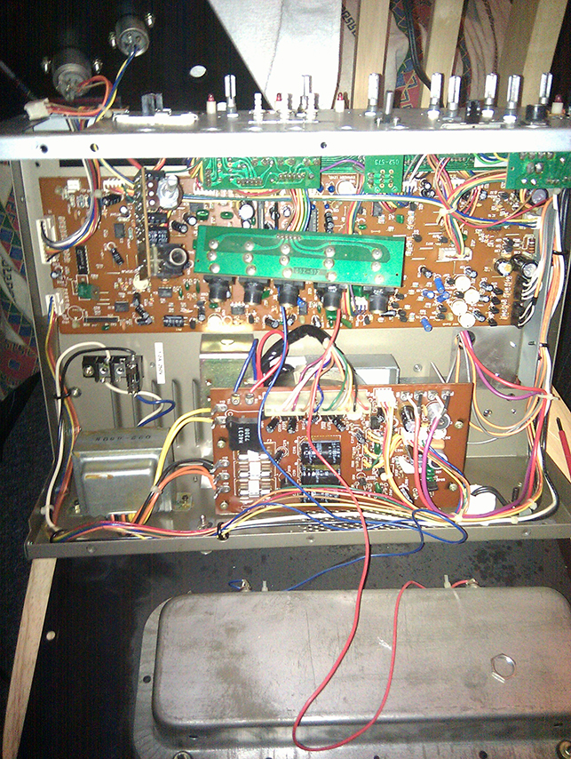 This was a Roland Chorus Echo SRE-555 in a desperate need of service, It was bought second hand from Japan and was damaged in transit. It is actually just a Roland RE-501, but enclosed in a more compact 19” rack-mount case. For some unknown reason the SRE-555 usually costs more than a standard RE-501 in second hand prices, possibly because of its rarity or the fact it will fit into a studio better with its robust case.