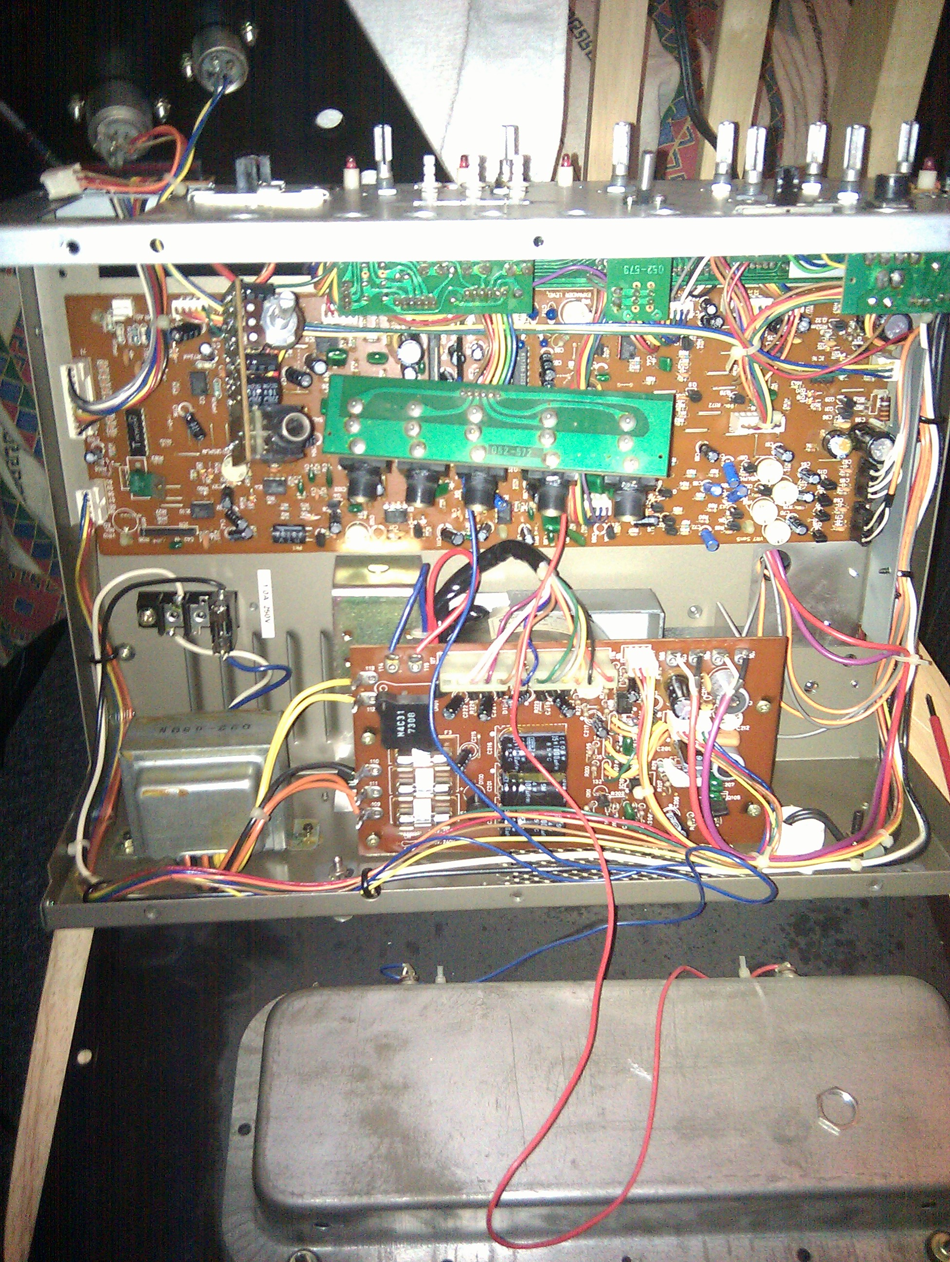 It took quite a lot of working out just to find the right way to open the unit, especially as there is no known service manual so it was all guess work. The construction is really complex and multi-layered. Below is when the inside was finally reached…