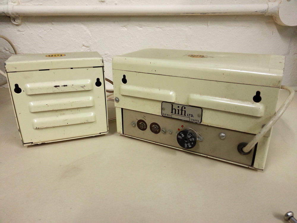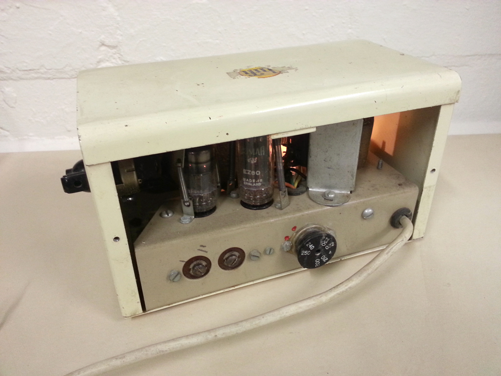 I found this at work, at first it looked like some kind of intercom but then I realised it is called a “Cri Call”. It is an old valve based baby monitor! What you do is screw the small box onto the wall in the babys room then trail a wire along your hallway to your living room to monitor the baby. Next test, put a guitar into it! it will definitely make a neat (tube!) practice amp.