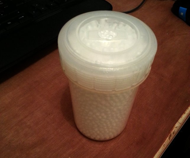 So it mentions that there are 2 stages, making the beads and casting the beads. There is no chance I have the ability to process my own polystyrene into EPS, but what if I can get hold of the secondary material? All that seems to happen is steam is injected into a mould, that can’t be hard to re-create! Looking at various Alibaba listings for raw EPS I noticed that the beads sold for straight casting look pretty much like the ones sold for filling bean bags. Could it be that manufacturers just buy pre cast raw EPS and fill bean bags with it? maybe, but perhaps they post-expand the beads for maximum volume and cost? Time for an experiment. I purchased a small bag of EPS beads from ebay, specifically ‘virgin’ beads ( horrible name ) that means they are not recycled broken down cast polystyrene but perhaps straight from the first process?