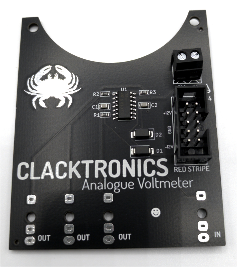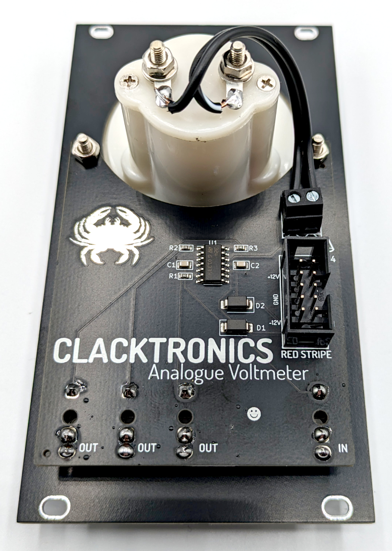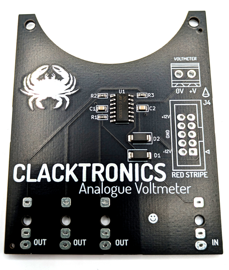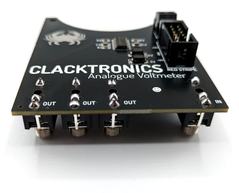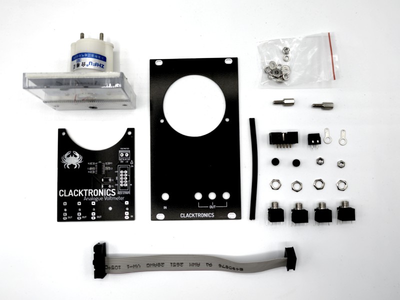Introducing the Clacktronics Analogue Voltmeter, the perfect addition to your modular setup for those seeking a touch of vintage charm and DC voltage signal monitoring. This partially assembled kit provides you with the necessary driving circuitry and analogue meter, allowing you to seamlessly integrate a classic voltage needle meter into your rack.