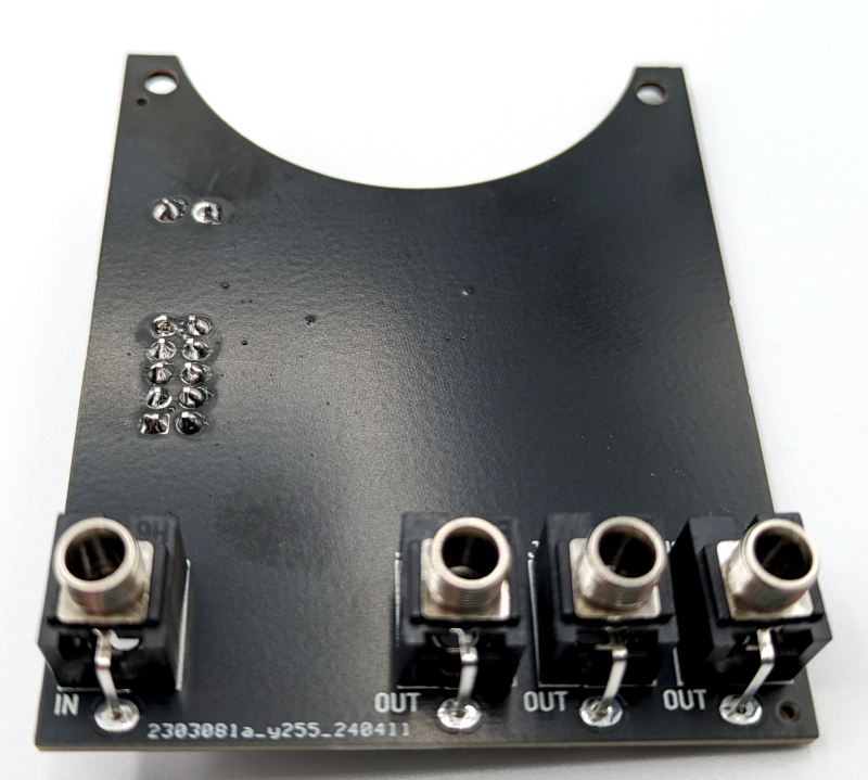 Solder the Jacks on the underside, its the side without the crab symbol on it. That is it! the main board is assembled.