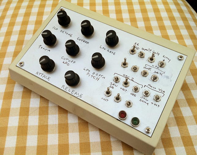 This was a one off project to see if I could fit MIDI into the simple MFOS soundlab (Designed by Ray Wilson see musicfromouterspace.com ) it was built from parts I had laying around including a MIDImplant (midimplant.com), basically I was attempting to try and make it perform like a monosynth. Below is a list of the modifications done.- MIDI control of pitch and trigger