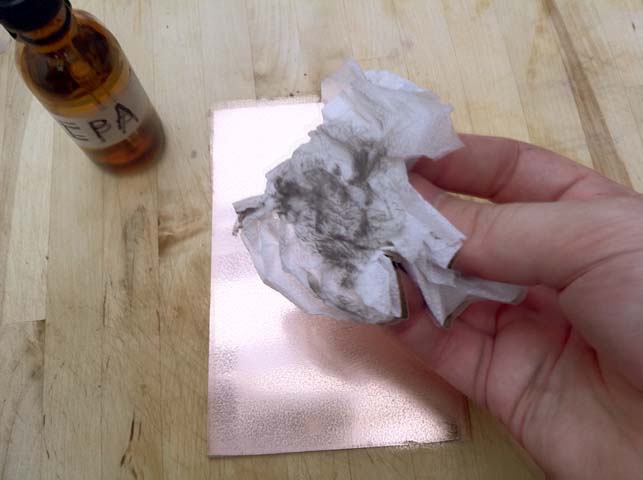The copper will not come off consistently, just swish until all the copper is gone.