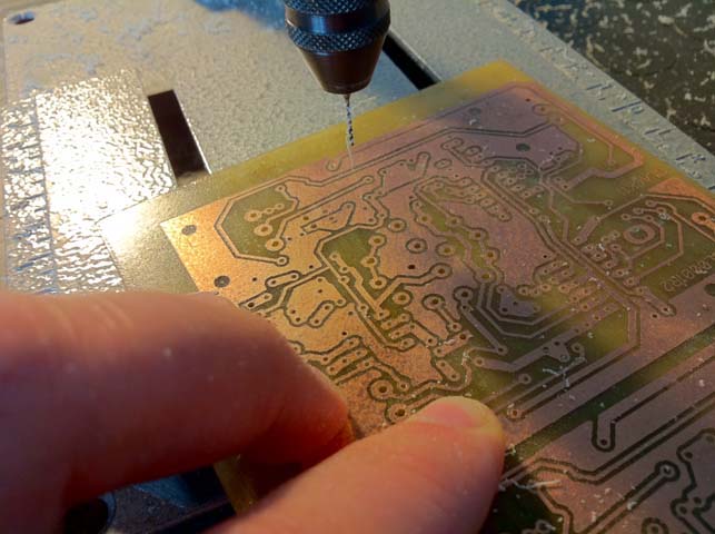 Done! now all I need to do is drill it, if you are doing a lot of holes like me ( 300 + ) then it is just not worth doing it by hand drill or pillar drill. A specialist PCB drill or press mounted hobby drill is a must, I use standard .9mm PCB refurbished ( resharpened from a factory ) drill bits for regular components and 1.2mm for wire and mounting holes.