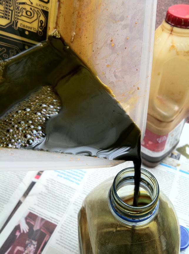 Then pour the acid into a container for future use. It needs to have a lid! and not be made of metal!!